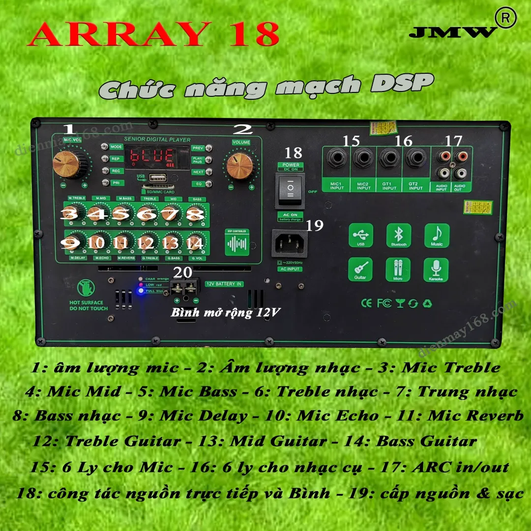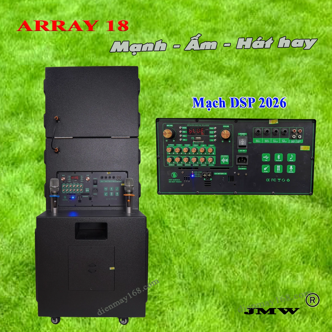 Bạn đang tìm một chiếc loa kéo hát karaoke gia đình hay – mạnh – bền, lại phải dễ dùng cho cả bố mẹ lớn tuổi? ARRAY 18 bass 5 tấc chính là lựa chọn “đáng đồng tiền” nhất. Với công suất 1200W, hệ thống mạch DSP chuyên nghiệp, 4 loa trung 16cm, 2 treble và bass 5 tấc “siêu lực”, chiếc loa này mang đến chất âm đầy uy lực, nội lực mạnh, hát karaoke cực phê, xứng đáng là “quái vật âm thanh” trong phân khúc.