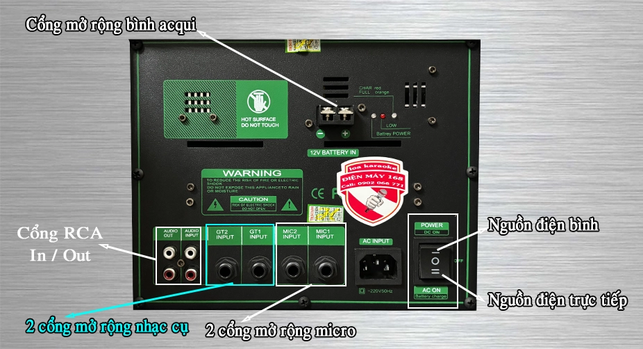 Bộ hiệu ứng cho giọng hát chuyên nghiệp Reverb + Echo + Delay giúp tại tạo giọng hát bay bên cạnh đó chúng ta có thể đệm đàn và hát qua 2 cổng nhạc cụ Guitar và 2 cổng mở rộng jack 6ly cho mic có dây và không dây.