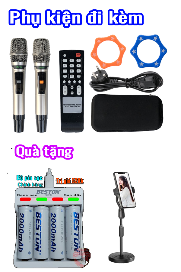 Tặng 2 micro không dây UHF cao cấp khi mua — hát karaoke ngay.