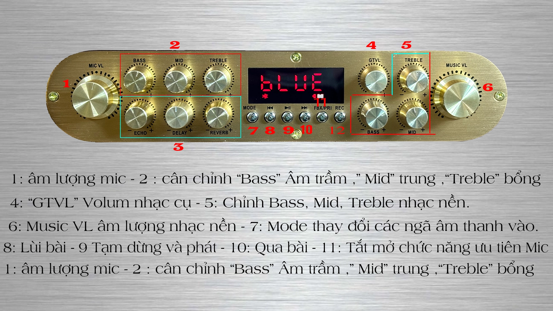 Mạch xử lý âm thanh T600 pro tícch hợp 2 chip DSP , 1 cho nhạc nền, 1 cho chi tiết giọng hát, Chúng ta có thể cân chỉnh giọng hát 3 dãi tần chi tiết Âm trầm, âm trung, âm bông để cho gióng hát được tròn vành rỏ chữ, Bộ 3 hiệu ứng Reverb , Echo, Delay giúp cho giọng hát bay và mượt khi hát karaoke bên cạnh đó phaanf nhạc nền có thể tăng giảm âm Mid để giợng hát của các bạn hòa quyện và beat nhạc.